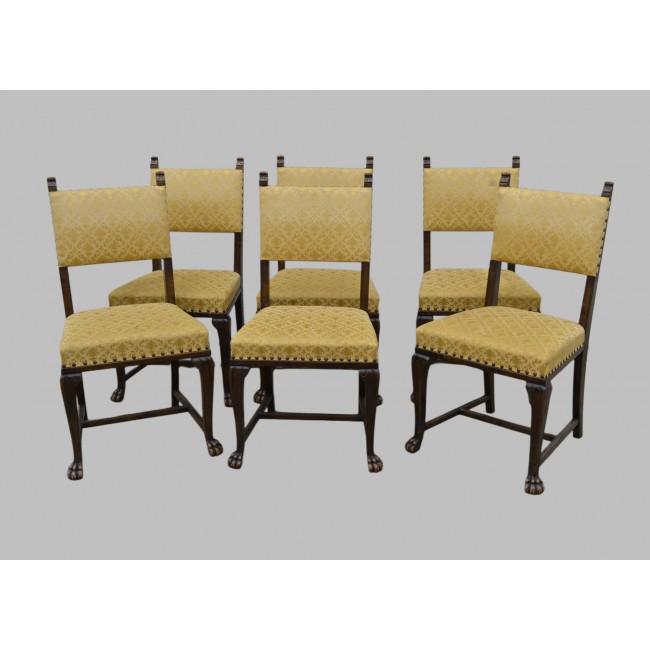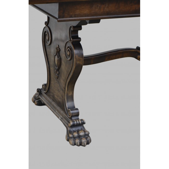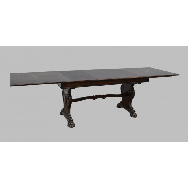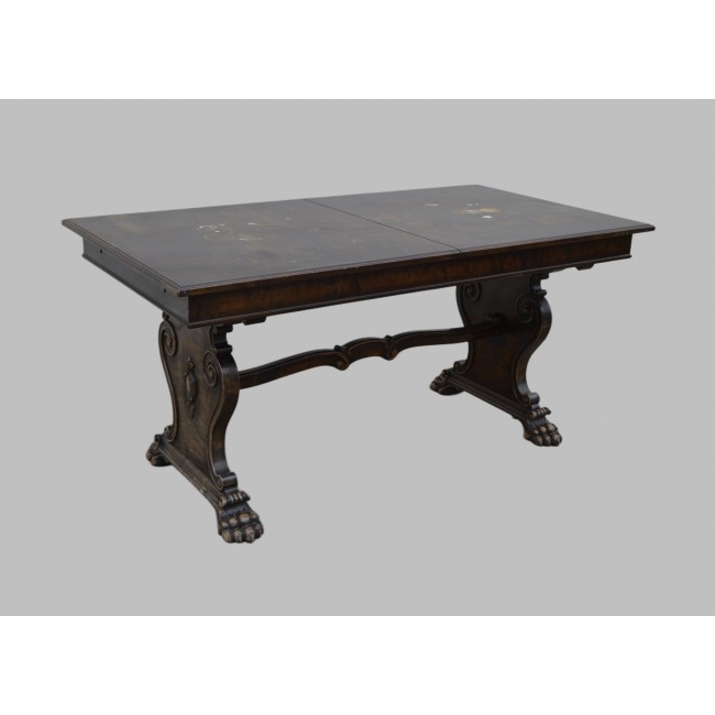 Set pentru living in stil Renastere din lemn masiv cu sculpturi manuale, perioada 1900. Setul este format din masa extensibila si 6 scaune.