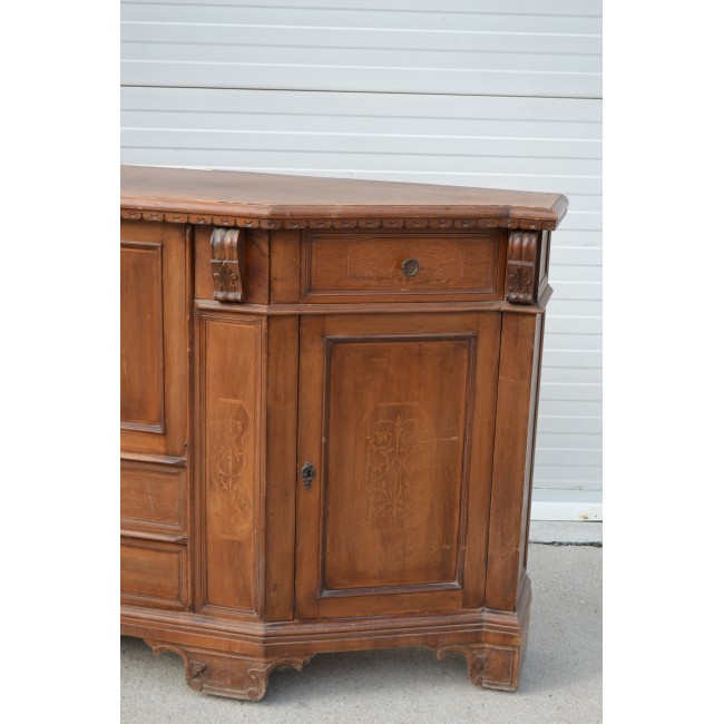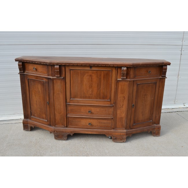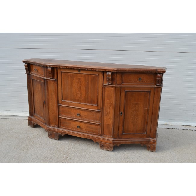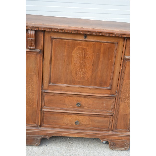 Servanta in stil italian, cu intarsie, cu modele lucrate manual, perioada 1900.