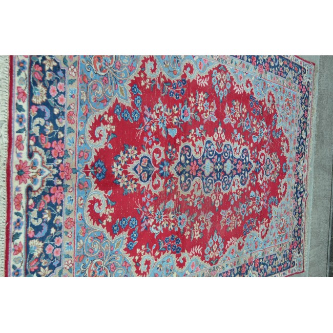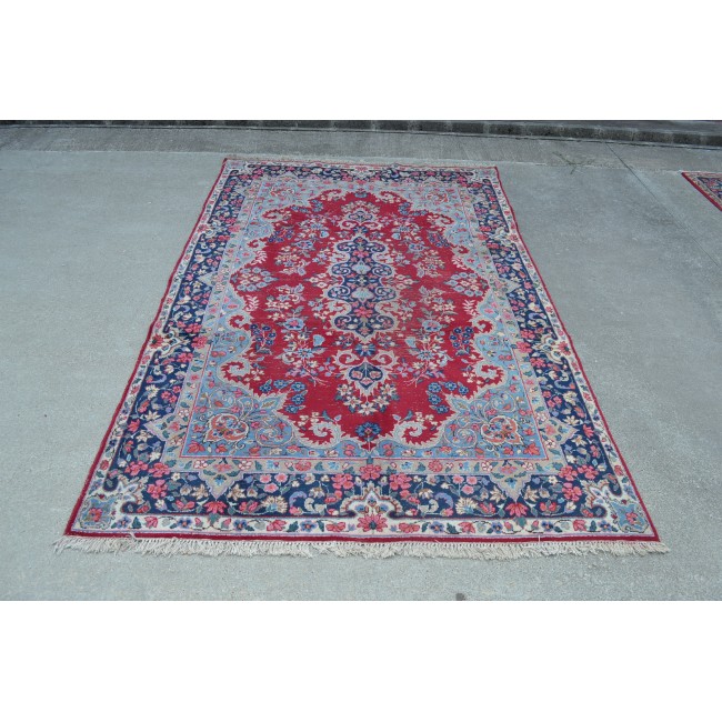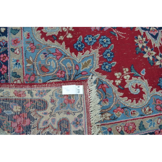 Covor persan, din lana, lucrat manual cu modele florale, din culori vegetale.