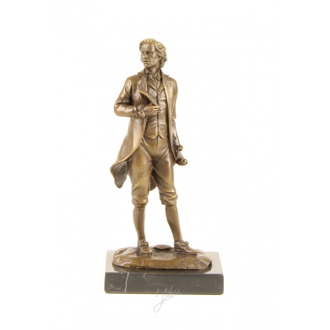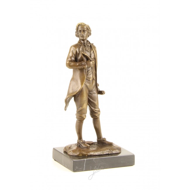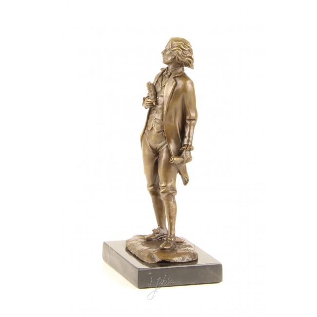 Sculptura din bronz a compozitorului Wolfgang Amadeus Mozart.