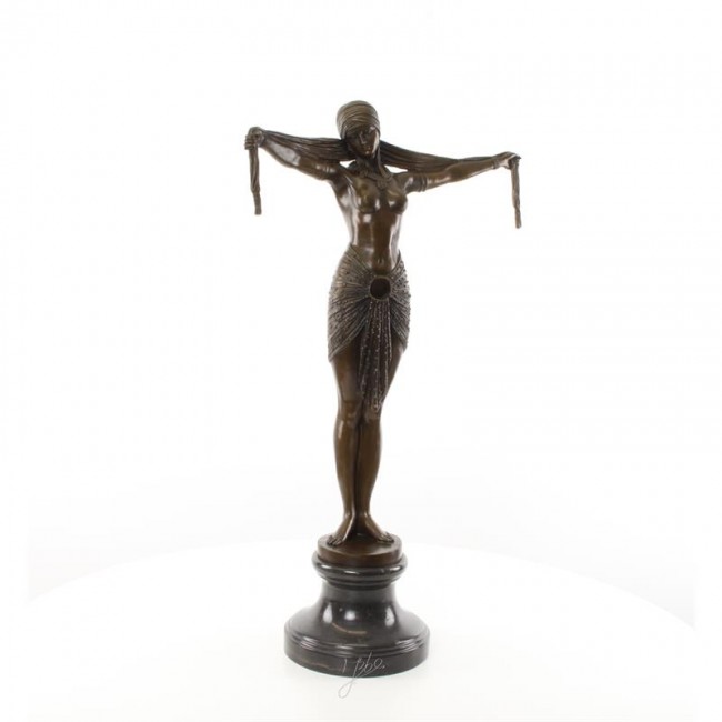 Sculptura din bronz, dansatoare cu o esarfa, pe un soclu de marmura, produs nou.