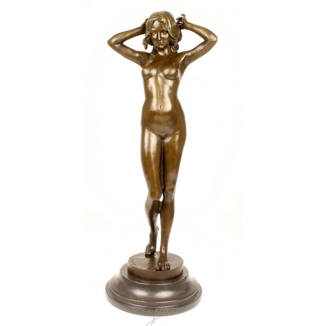 Statueta din bronz intruchipand nud o femeie ce are mainile in par, produs nou.