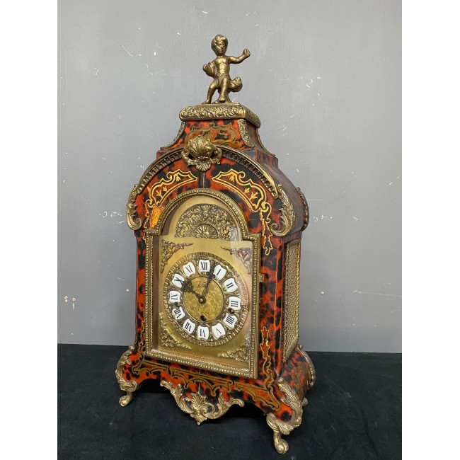 Ceas Boulle francez, model deosebit, este functional, cu bataie la sfert, jumatate si trei sfert, perioada 1900.