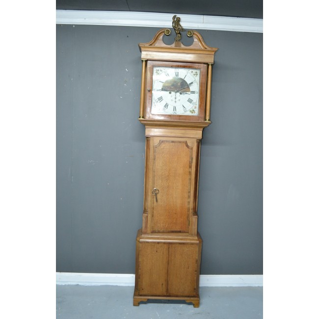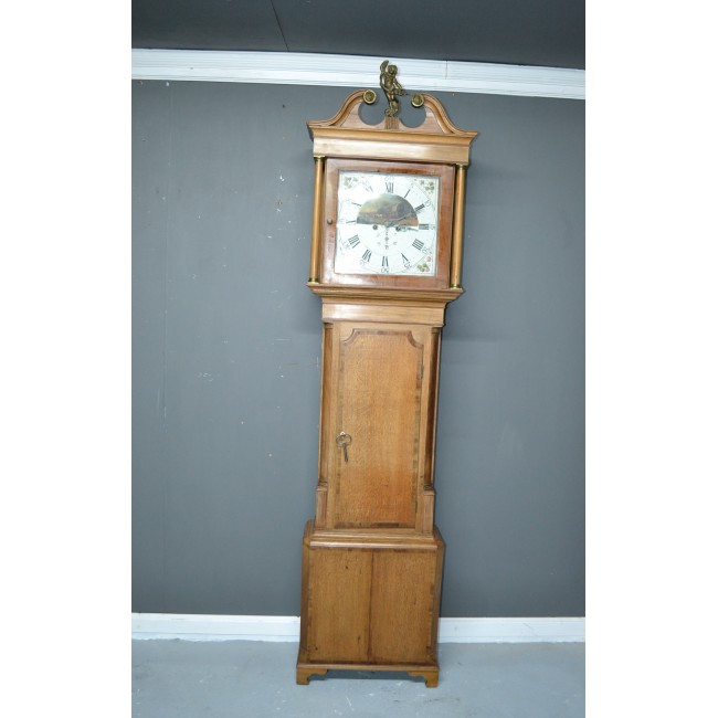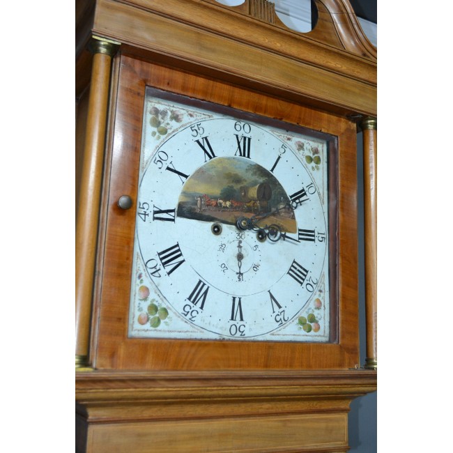 Pendul postament, din lemn masiv, cadran cu pictura manuala, model cu amoras, perioada 1800.
