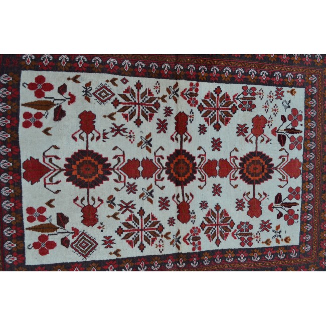 Covor turcesc, din lana, lucrat manual, cu motive florale, culori vegetale.