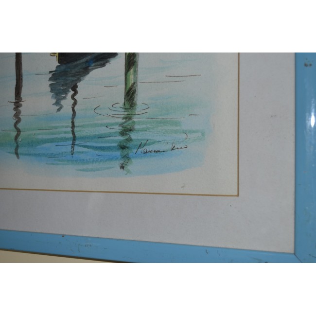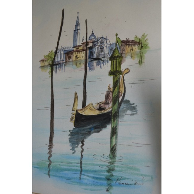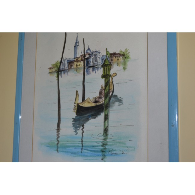 Tablou acuarela, gondola venetiana, semnat.
