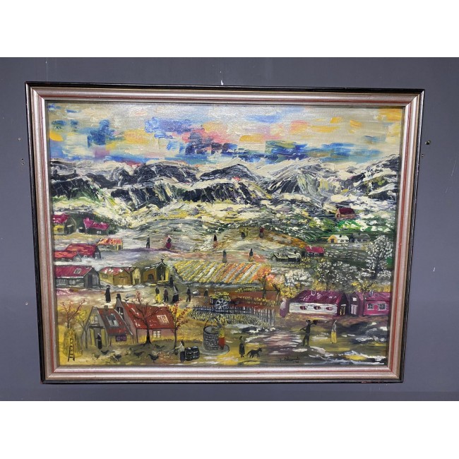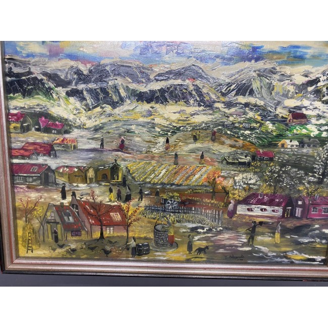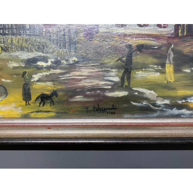 Tablou ulei pe paza, pictura naiva, semnat, perioada 1900.