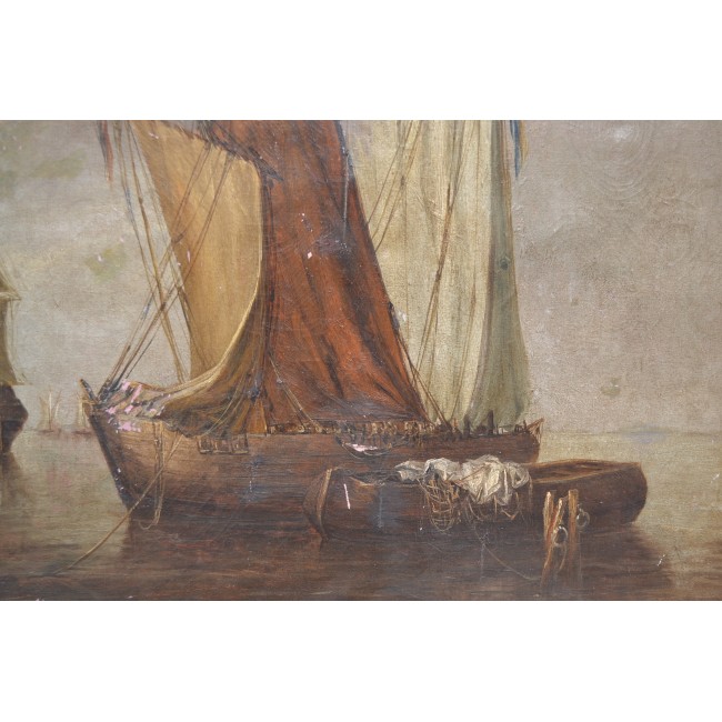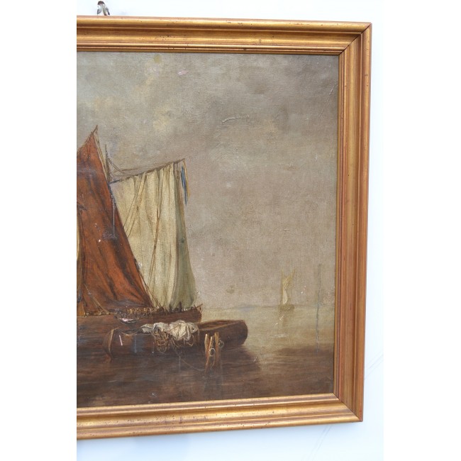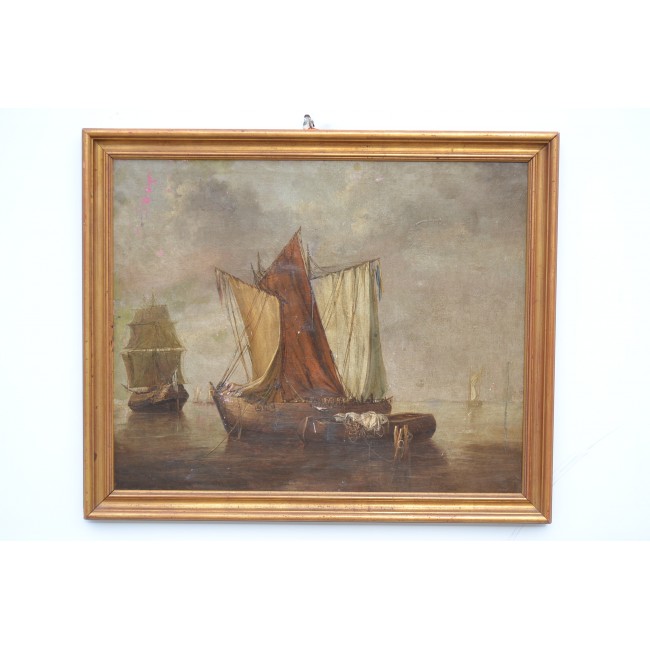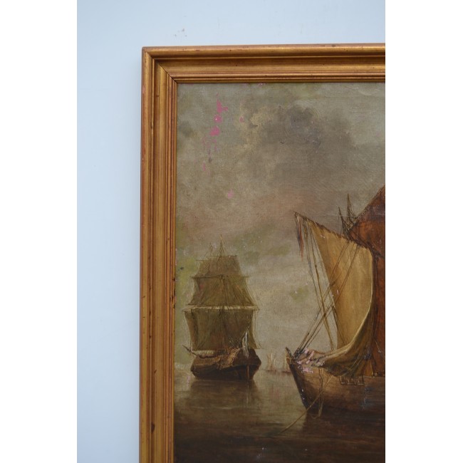 Tablou ulei pe panza, scena flota maritima, nesemnat.