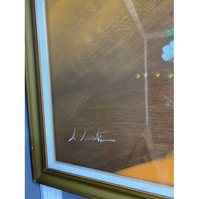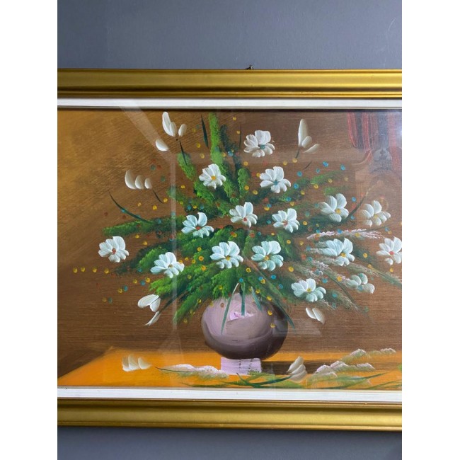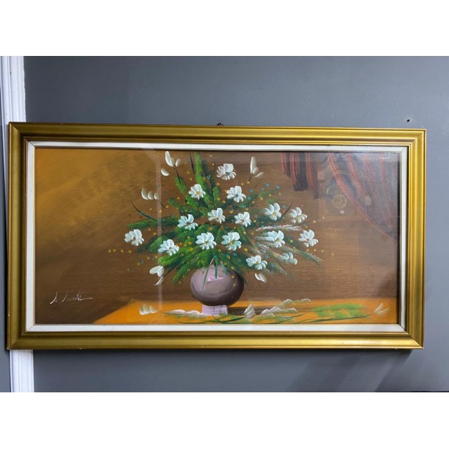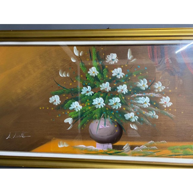 Tablou ulei pe panza, natura statica-vaza cu flori, semnat.