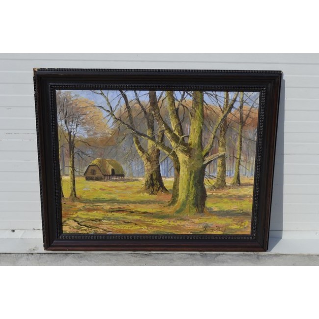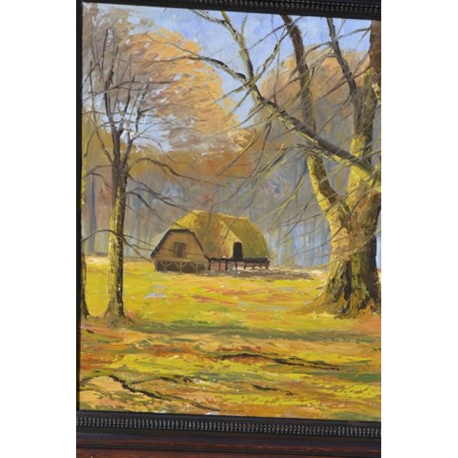 Tablou peisaj de toamna, ulei pe panza, semnat.