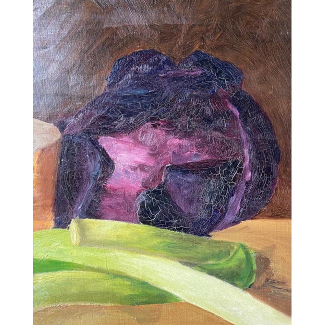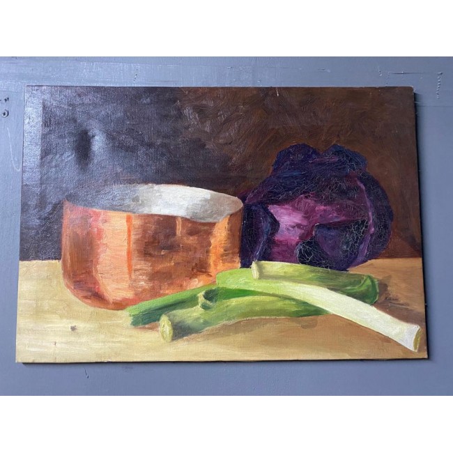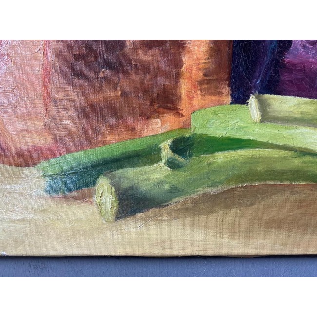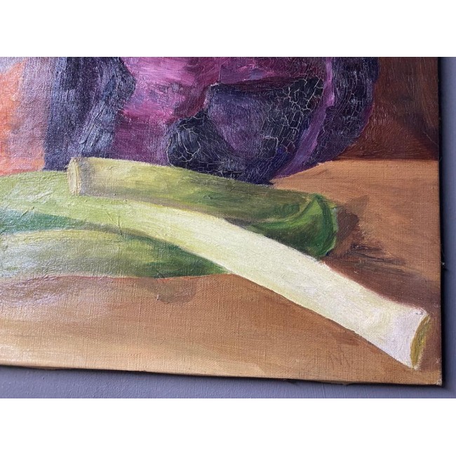 Tablou natura statica, ulei pe panza, semnat, lipsa rama.