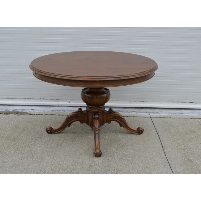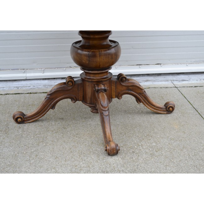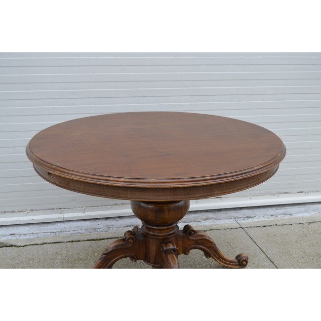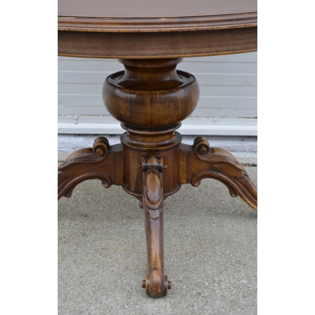 Masa pentru salon, in stil clasic italian, din lemn cu picior central sculptat manual, perioada 1900.