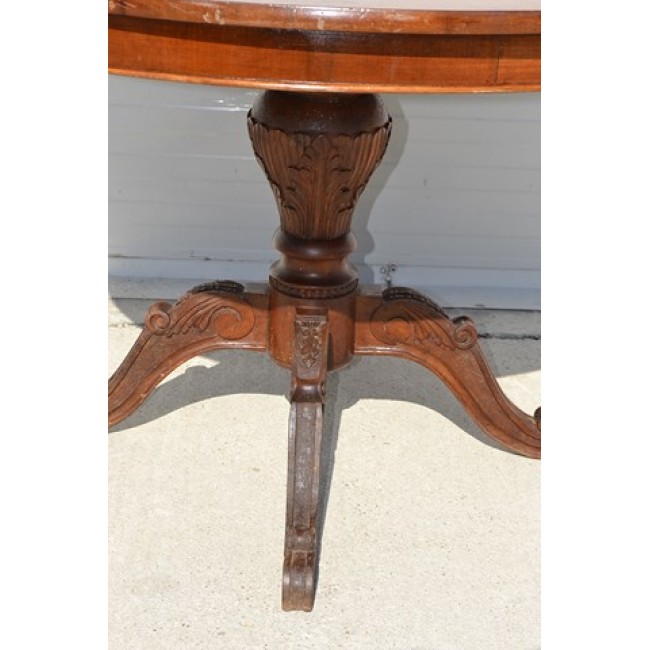 Masa sufragerie. din lemn cu furnir de nuc, piciorul este sculptat manual, perioada 1900.