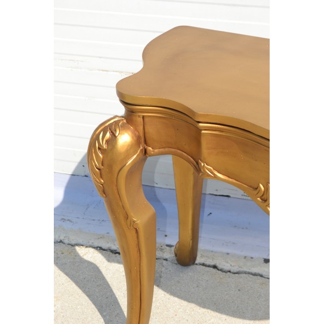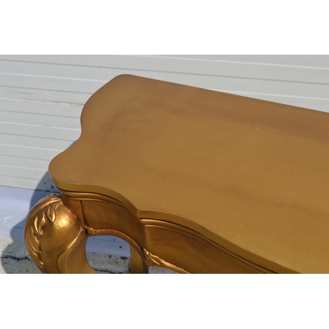 Consola in stil Chippendale, din lemn masiv de nuc, cu sculptura manuala deosebita, picioare curbate, aurie, perioada 1920.
