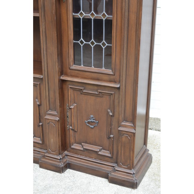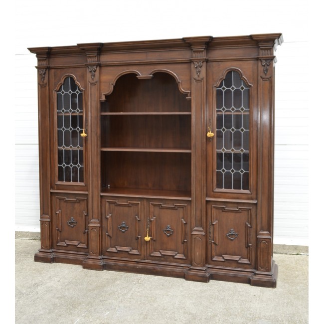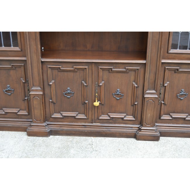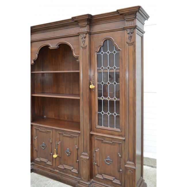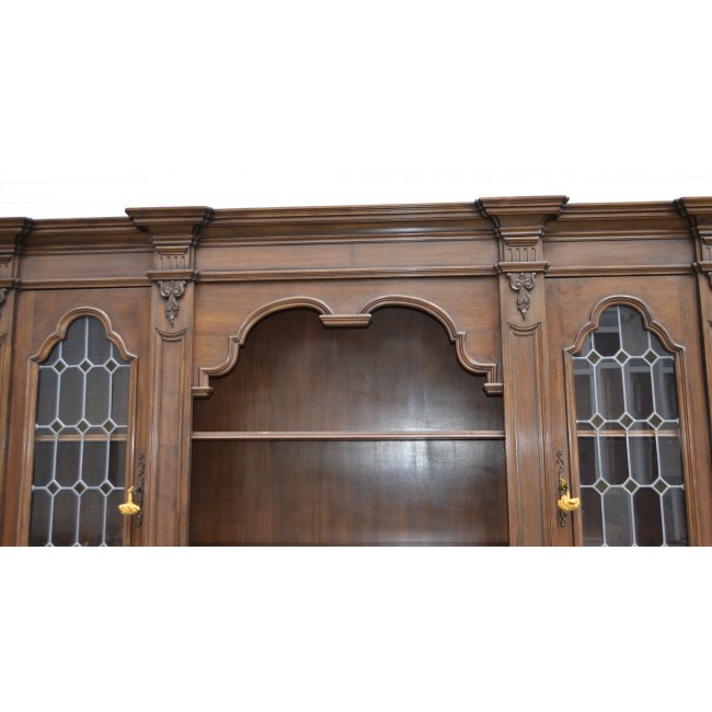 Biblioteca in stil clasic italian, din lemn cu sculpturi manuale, geamuri cu vitralii, perioada 1900.