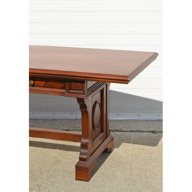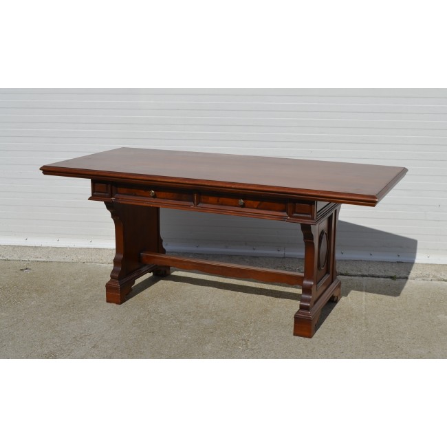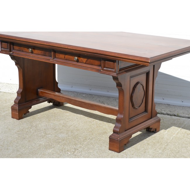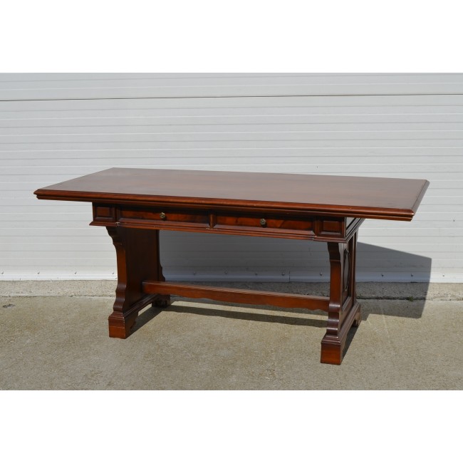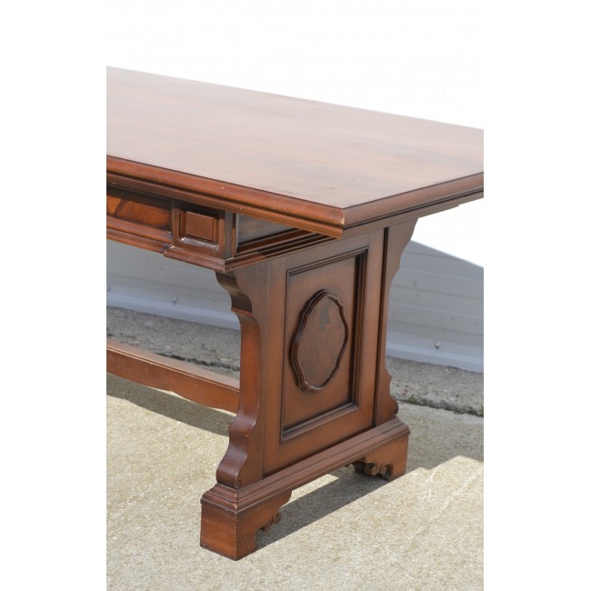 Masa de scris in stil clasic italian, cu doua sertare, din lemn cu radacina de nuc, perioada 1950.
