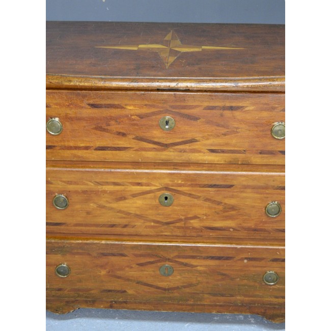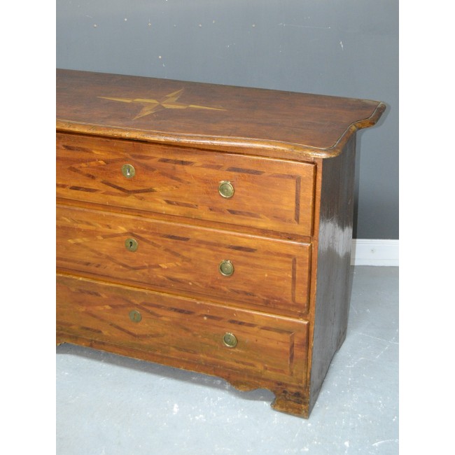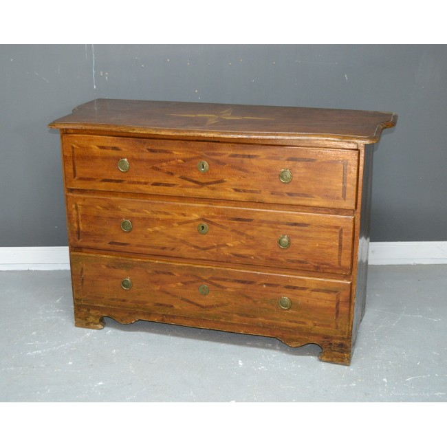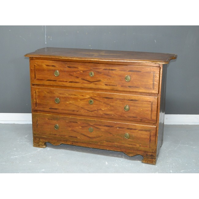 Comoda in stil Louisez, din lemn masiv cu intarsie, perioada 1800.