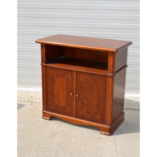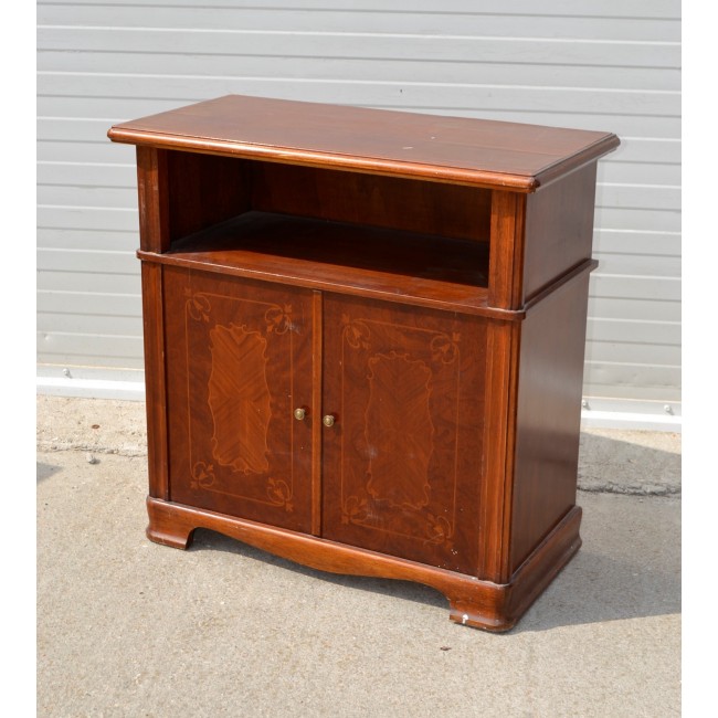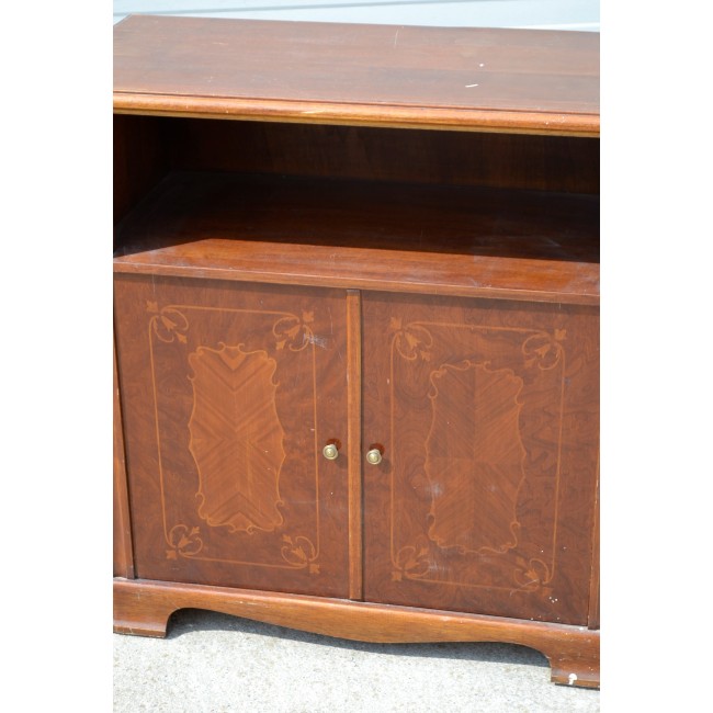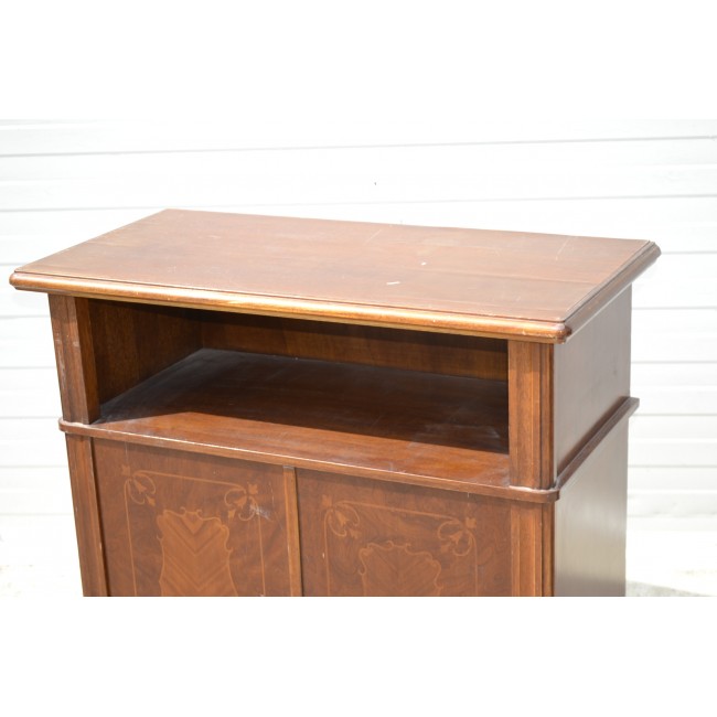 Comoda TV, in stil clasic italian, din lemn cu furnir de nuc si modele intarsiate, perioada 1950.