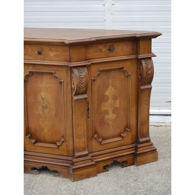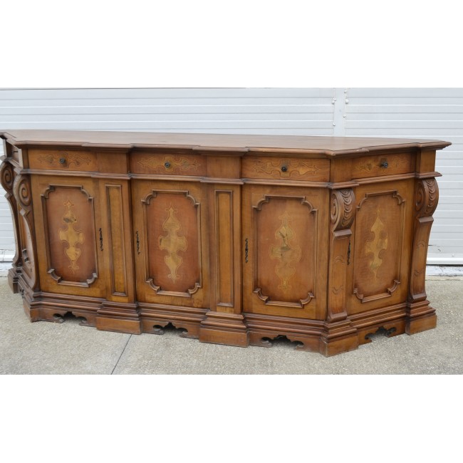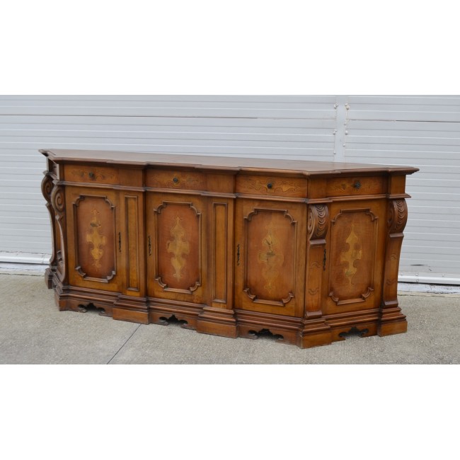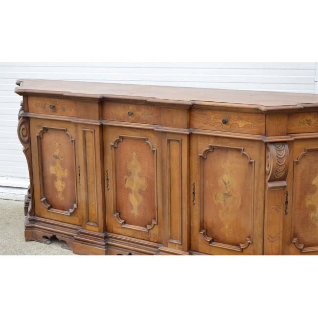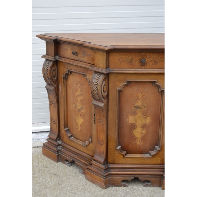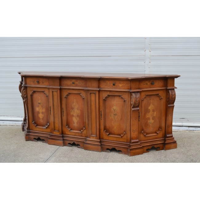Servanta in stil clasic italian, din lemn masiv cu sculpturi manuale si intarsie, perioada 1950.