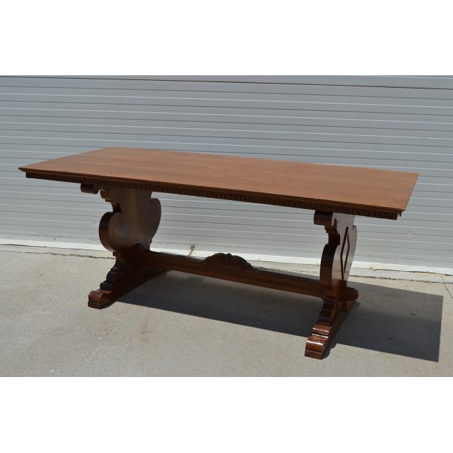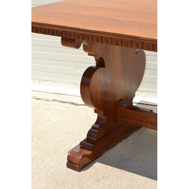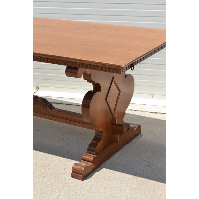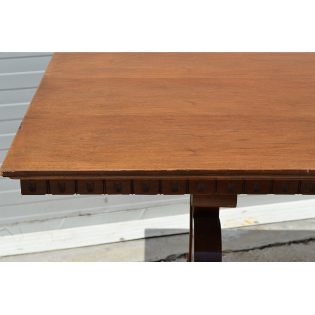 Masa din lemn masiv de nuc, in stil clasic, cu intarsie, detalii lucrate manual, perioada 1910.