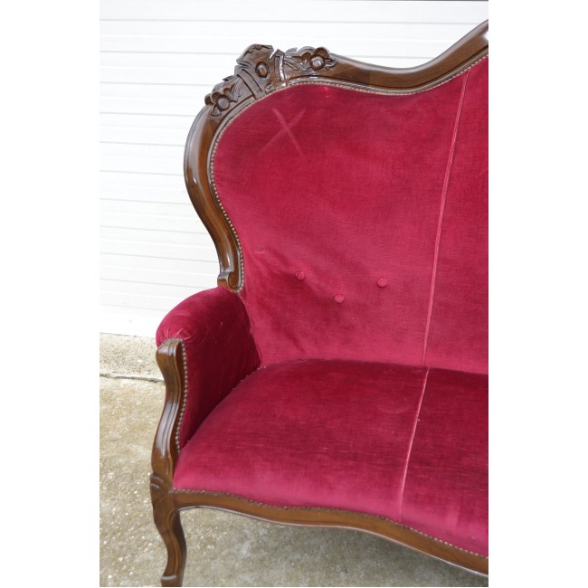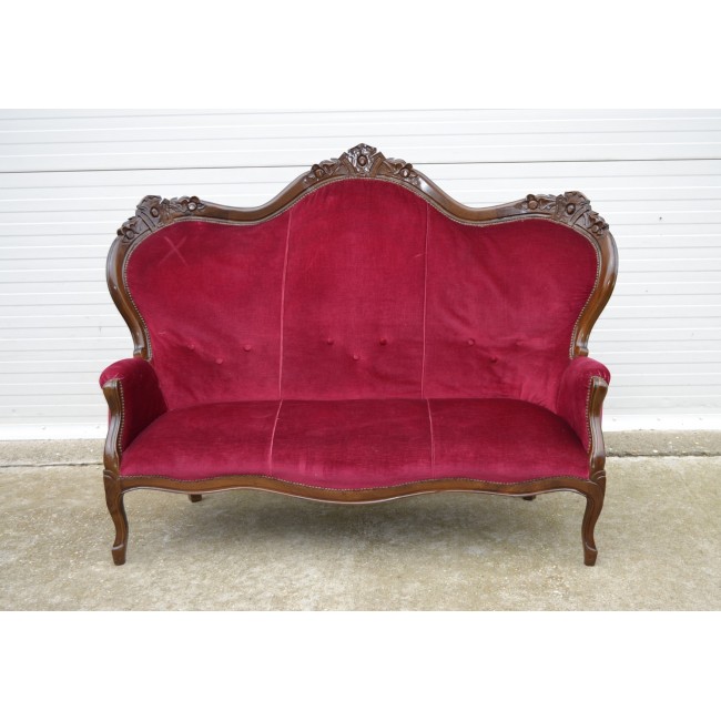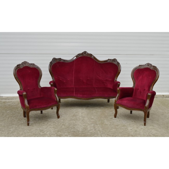 Salon in stil Louis Philipe, din lemn cu sculpturi manuale, model curbat, perioada 1940.