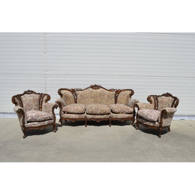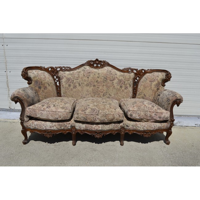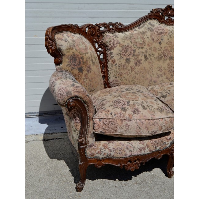 Salon in stil neo-baroc, din lemn masiv, cu sculptura manuala deosebita, necesita restaurare si retapitare, perioada 1920.
