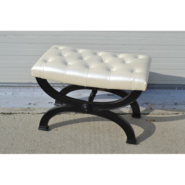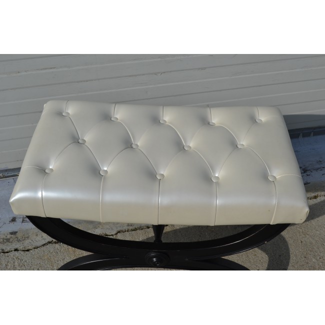 Scaun pentru toaleta, din lemn cu detalii lucrate manual, tapitate in stil Chesterfield, perioada 1950.