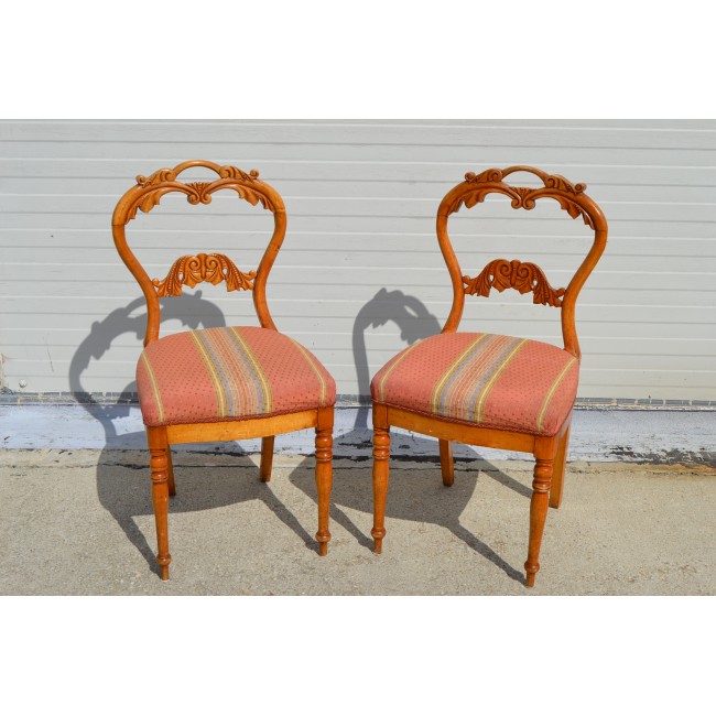 Set 2 scaune in stil clasic, din lemn masiv cu spatar sculptat manual, perioada 1920.